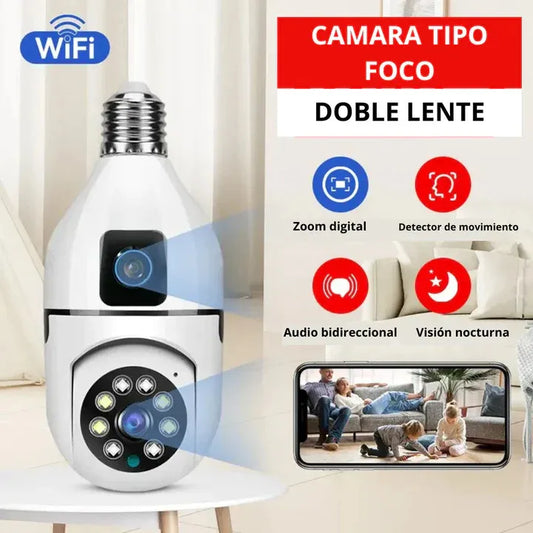 Cámara de Seguridad Doble 360° | Bombilla Vigilante Wifi