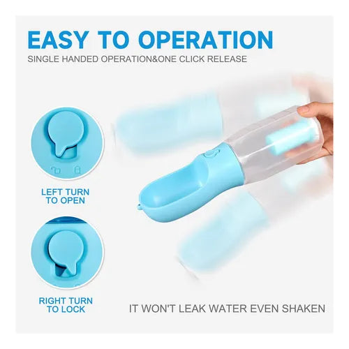Olvida las botellas incómodas y el estrés de no poder darle agua a tu mascota. El Bebedero Portátil para Mascotas es fácil de usar y asegura que tu amigo peludo siempre tenga agua fresca a su disposición, sin derrames y sin complicaciones.