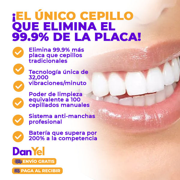 El Cepillo de Dientes Eléctrico de Alta Frecuencia elimina un asombroso 99.9% de la placa dental. Con 32,000 vibraciones por minuto, supera 150 veces la eficacia de un cepillo manual tradicional.