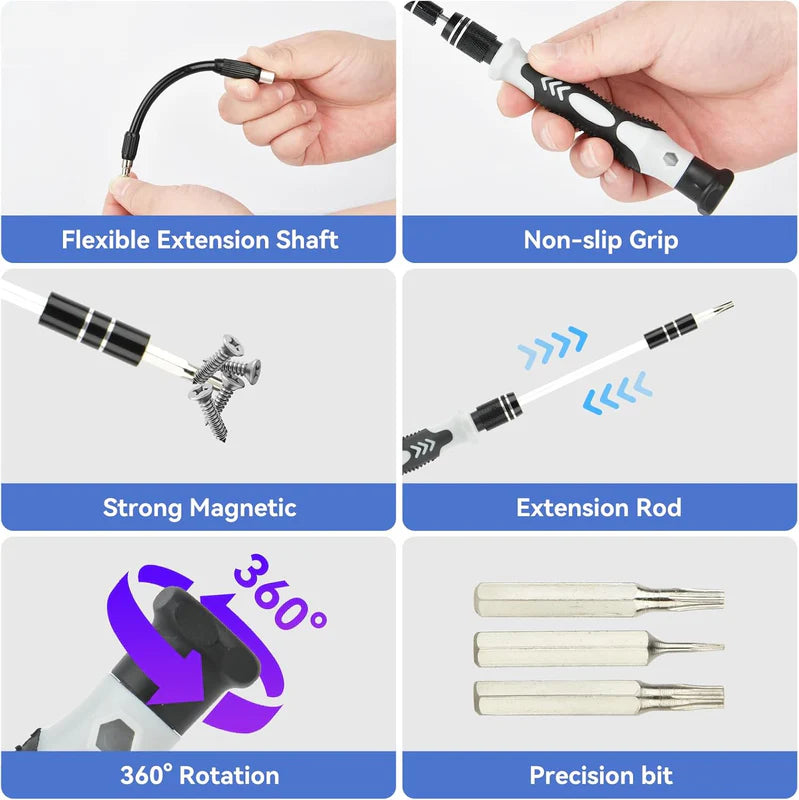 ¡Potencia tus habilidades de reparación con el Juego de Destornilladores Magnéticos, la herramienta esencial para cualquier aficionado o profesional!