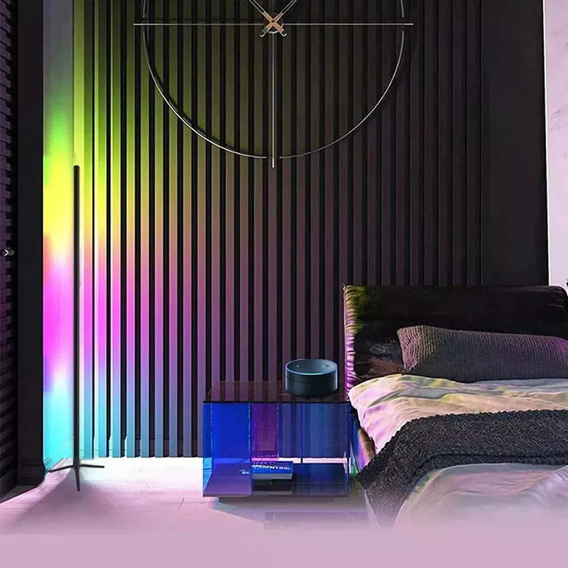 Presentamos nuestra lámpara de pie LED nórdica, el complemento perfecto para la decoración contemporánea de su dormitorio. Esta impresionante lámpara cuenta con luces de piso LED RGB en ángulo recto para esquinas, que agregan un toque colorido y vibrante a su espacio.