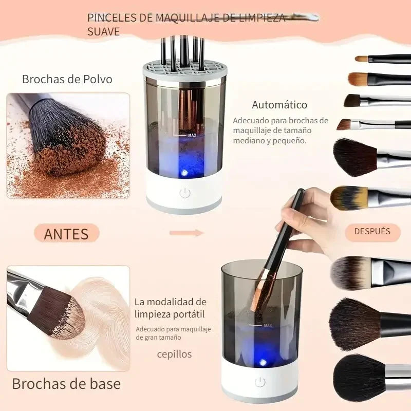 La rotación automática puede ser agresiva para brochas muy delicadas o de pelo natural caro. Brochas sintéticas resisten mejor, pero brochas premium de pelo natural pueden desformarse o perder cerdas con uso frecuente del dispositivo.