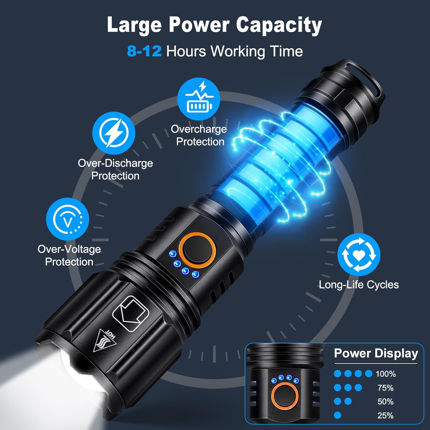 Nuestra super linterna de largo alcance es perfecta para ti. Con su potente haz de luz, podrás iluminar grandes áreas y disfrutar de tus actividades favoritas en cualquier momento del día o la noche.