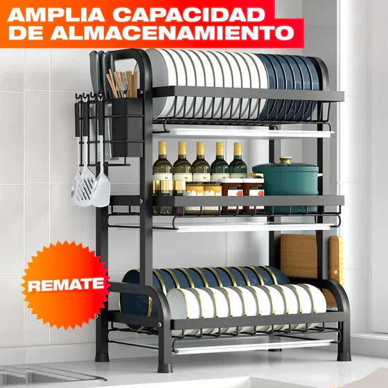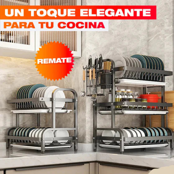 Ideal para cualquier hogar que busque una forma práctica y estilizada de secar y almacenar platos, cubiertos y otros utensilios de cocina.