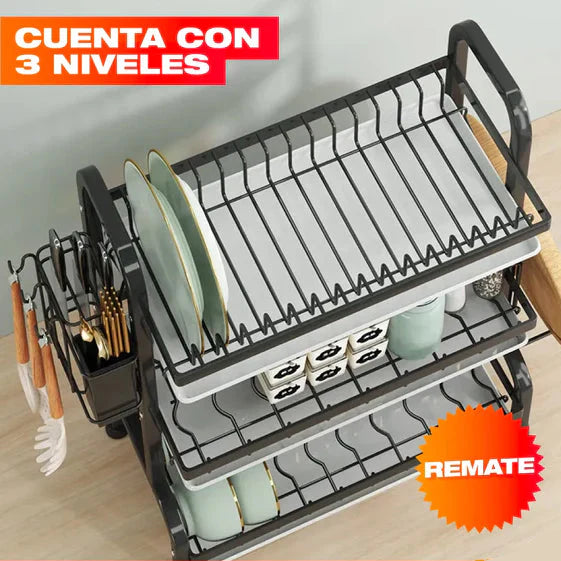 ¡Facilita tu vida en la cocina con el escurridor de platos de 3 niveles!