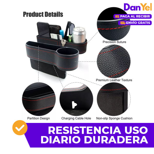 Con el Organizador Lateral para Asientos, transforma los espacios perdidos en almacenamiento útil. ¡El orden en tu auto nunca fue tan simple!