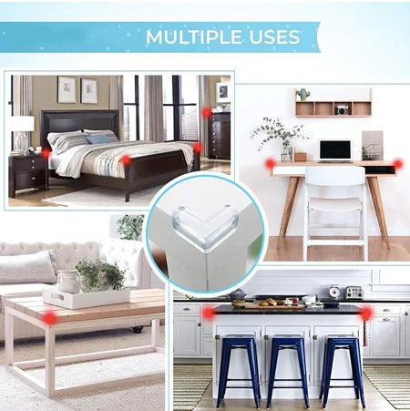 Este set de protectores de esquinas está diseñado para cubrir esquinas peligrosas de mesas, muebles y artefactos, reduciendo el riesgo de golpes o heridas en niños y adultos.