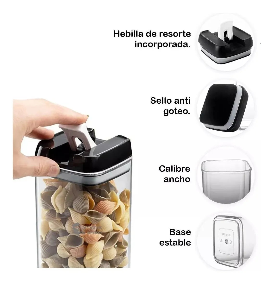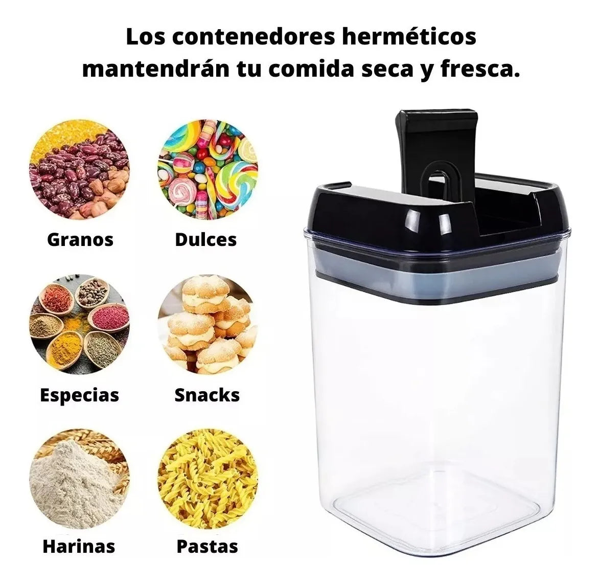 Desde snacks hasta granos de café, estos contenedores son perfectos para mantener todo en su lugar. Disfruta de una cocina ordenada y eficiente con esta solución de almacenamiento inteligente.